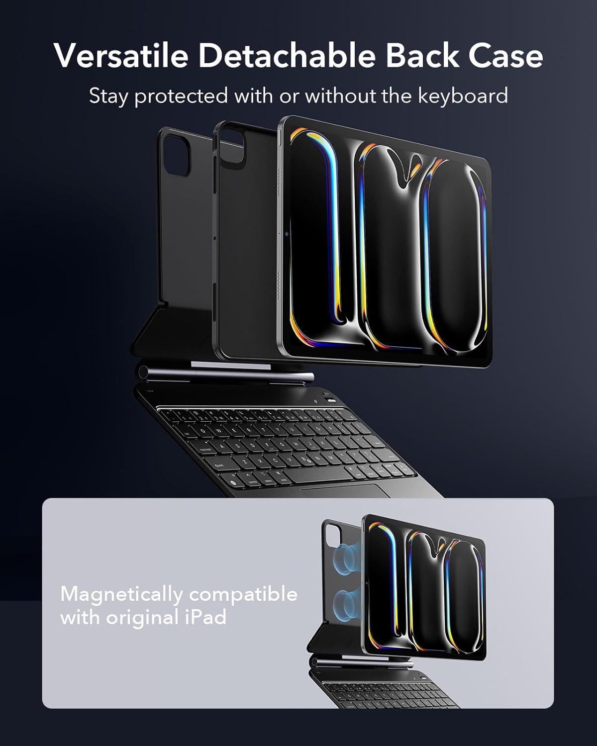ESR iPad Pro 11 Inch Case with Keyboard (M5/M4, 2025/2024), iPad Pro 11(5th) Keyboard Case with Easy-Set Magnetic Stand, Portrait/Landscape Modes, Removable Protective Case, Rebound 360 Series, White(Black)