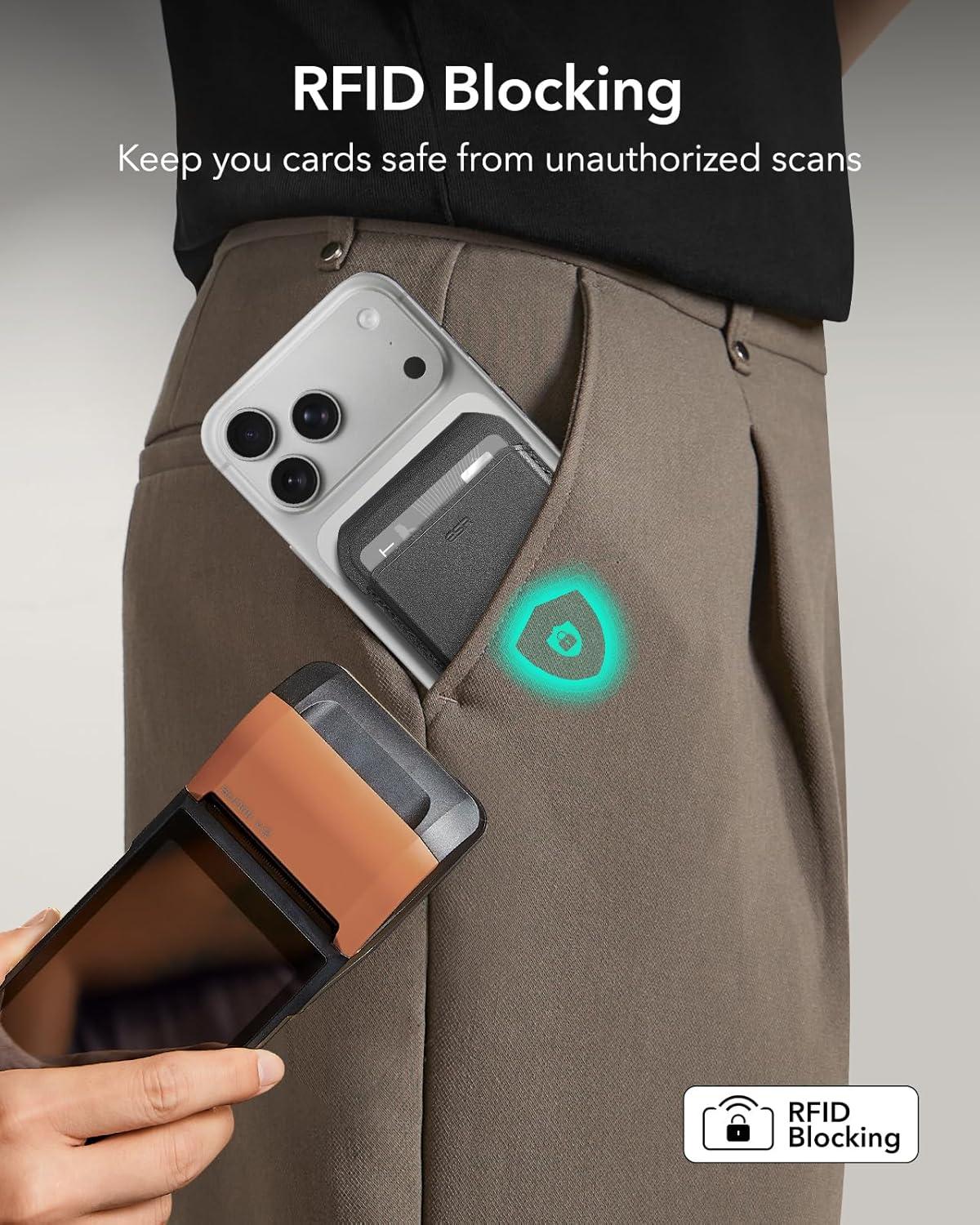 Stronger Magnetic Lock: the ESR magnetic phone wallet with 3,000 g of holding force is 275% stronger than the official brand to ensure that your wallet stand stays securely locked on