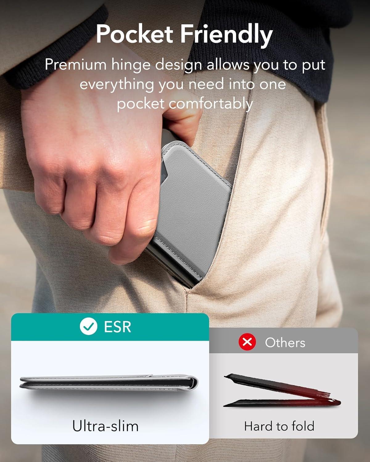 Stronger Magnetic Lock: the ESR magnetic phone wallet with 3,000 g of holding force is 275% stronger than the official brand to ensure that your wallet stand stays securely locked on