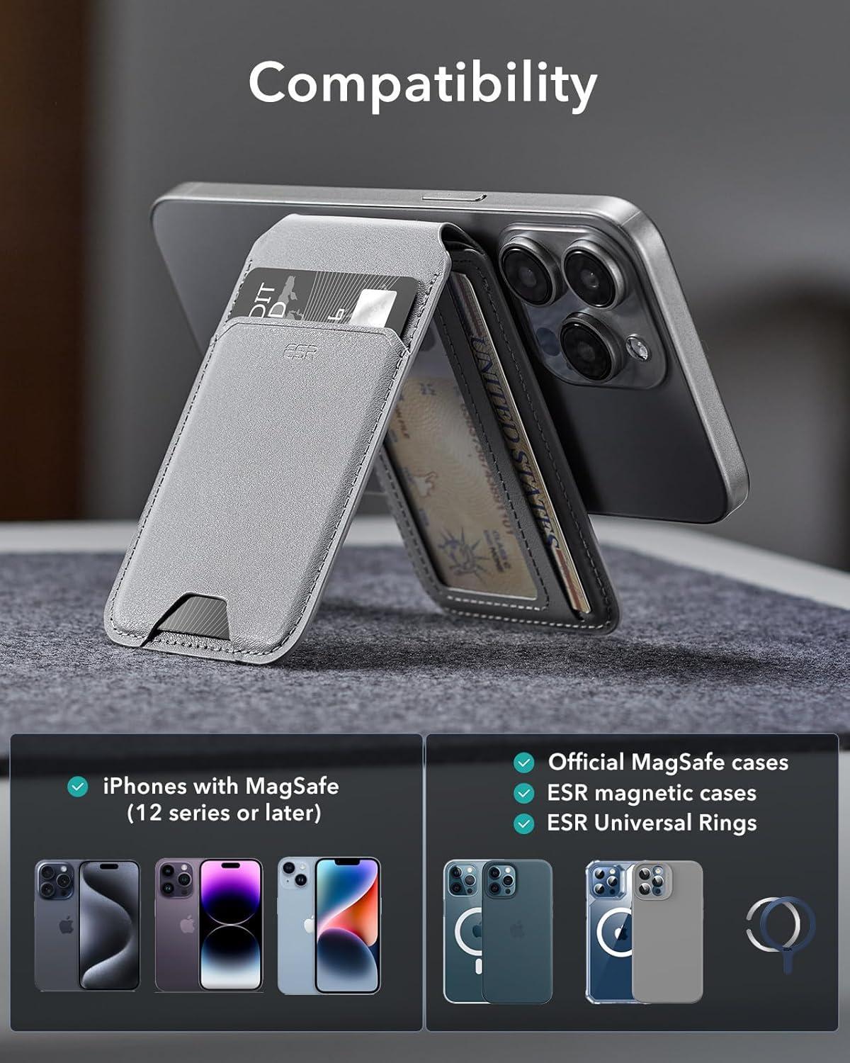| Whats in the box | Magnetic wallet stand, compatibility with iPhone models, official magnetic cases, and ESR HaloLock cases |