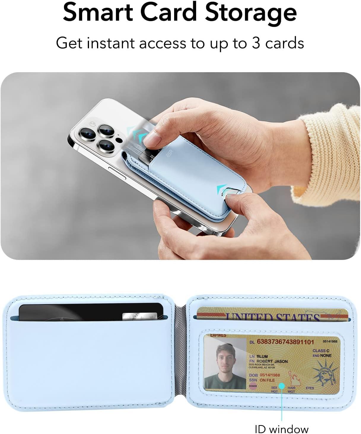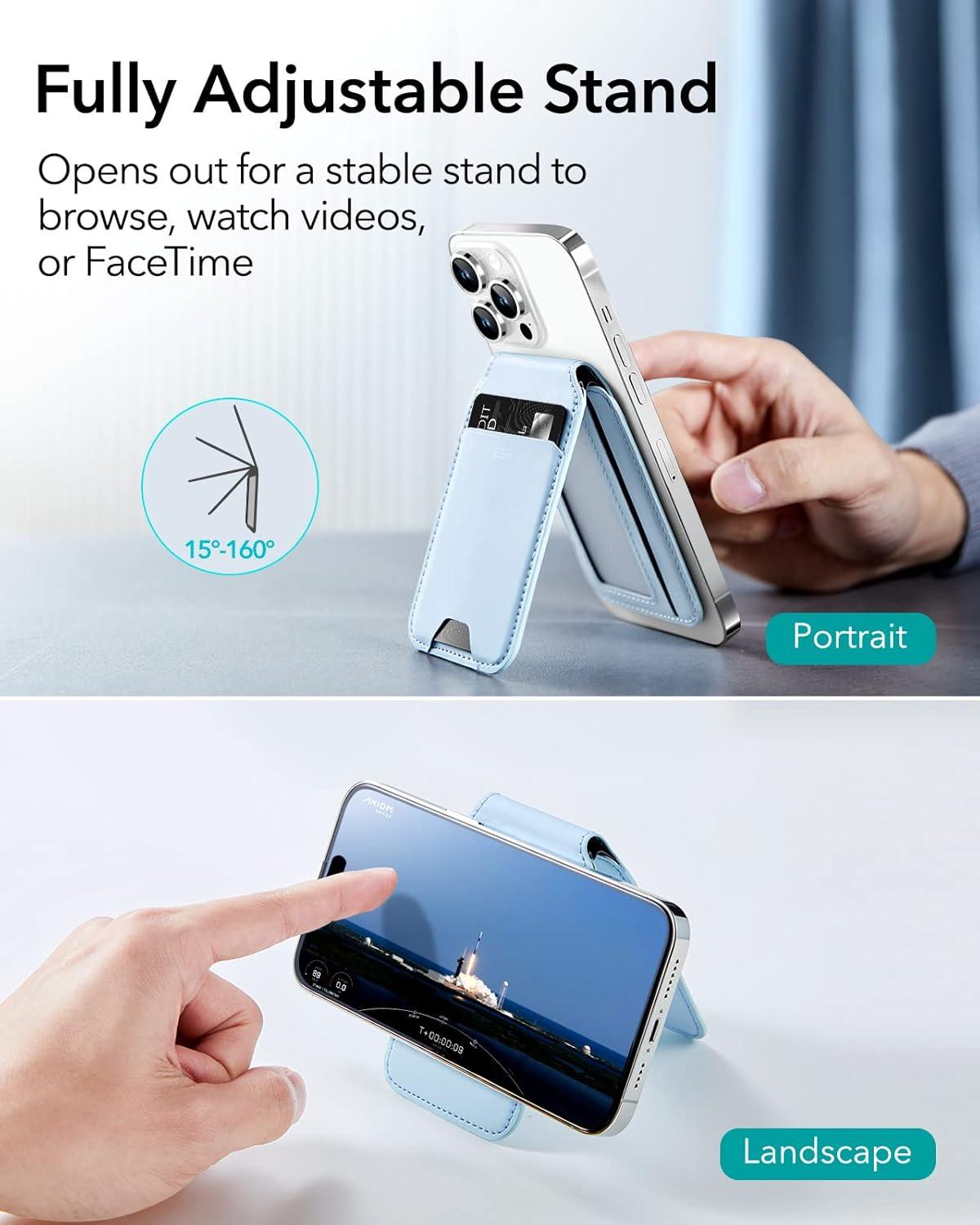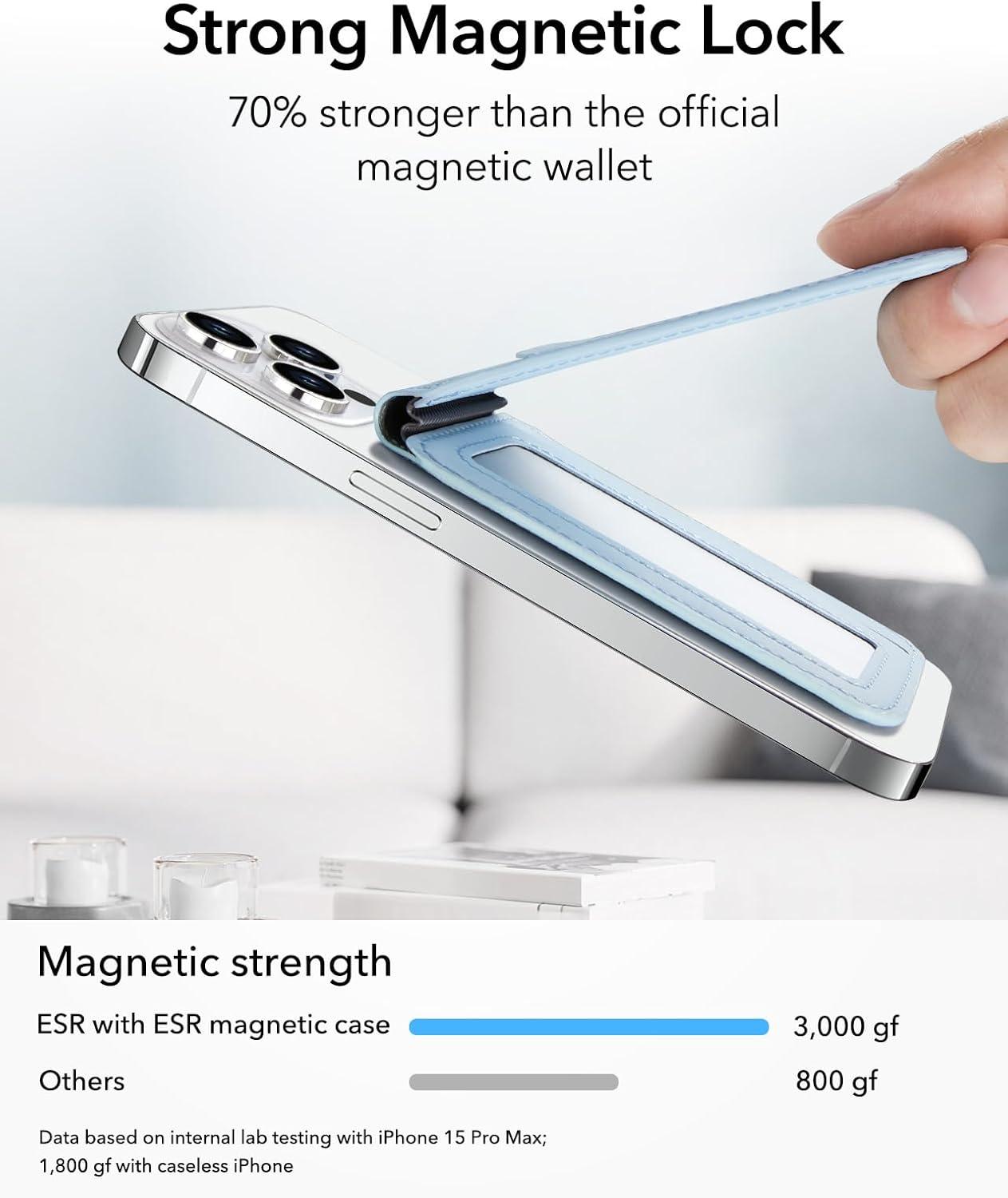 Stronger Magnetic Lock: the ESR magnetic phone wallet with 3,000 g of holding force is 275% stronger than the official brand to ensure that your wallet stand stays securely locked on