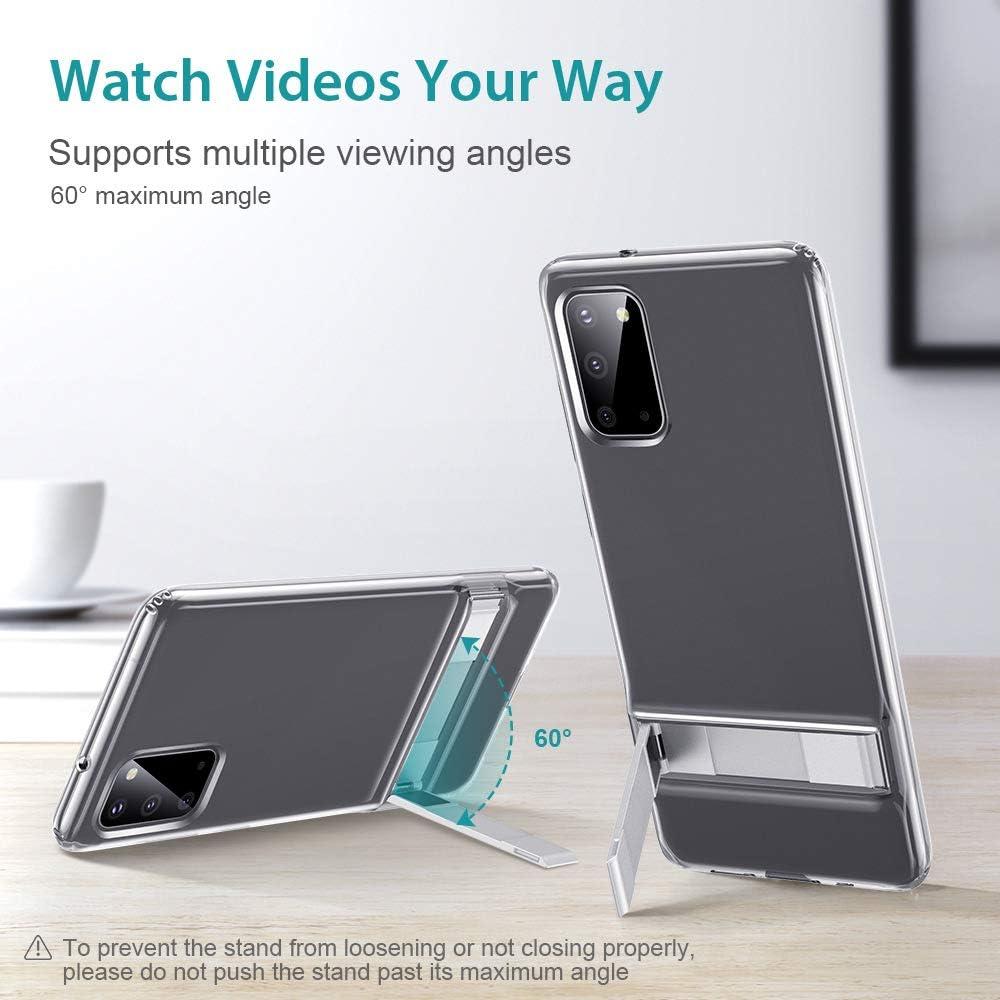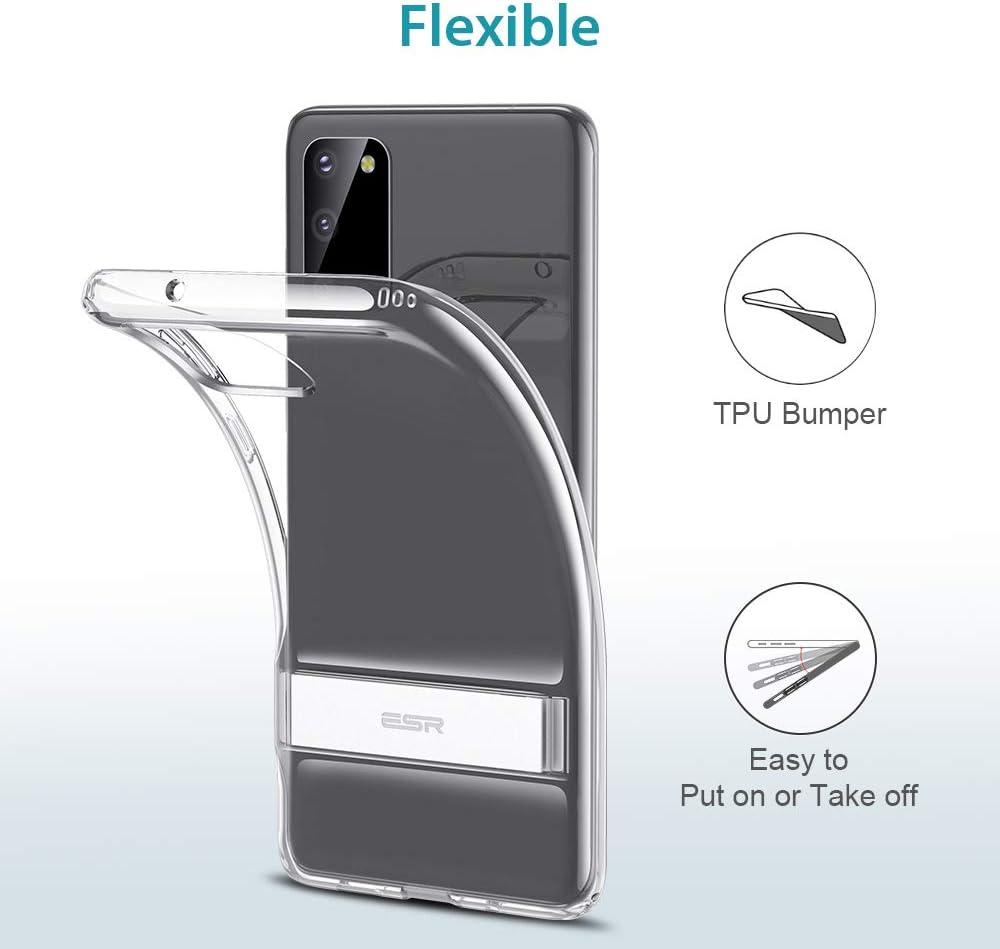 ESR Metal Kickstand Compatible with Samsung Galaxy S20 Case, Vertical and Horizontal Stand, Reinforced Drop Protection, Flexible TPU Case for Samsung S20, Clear