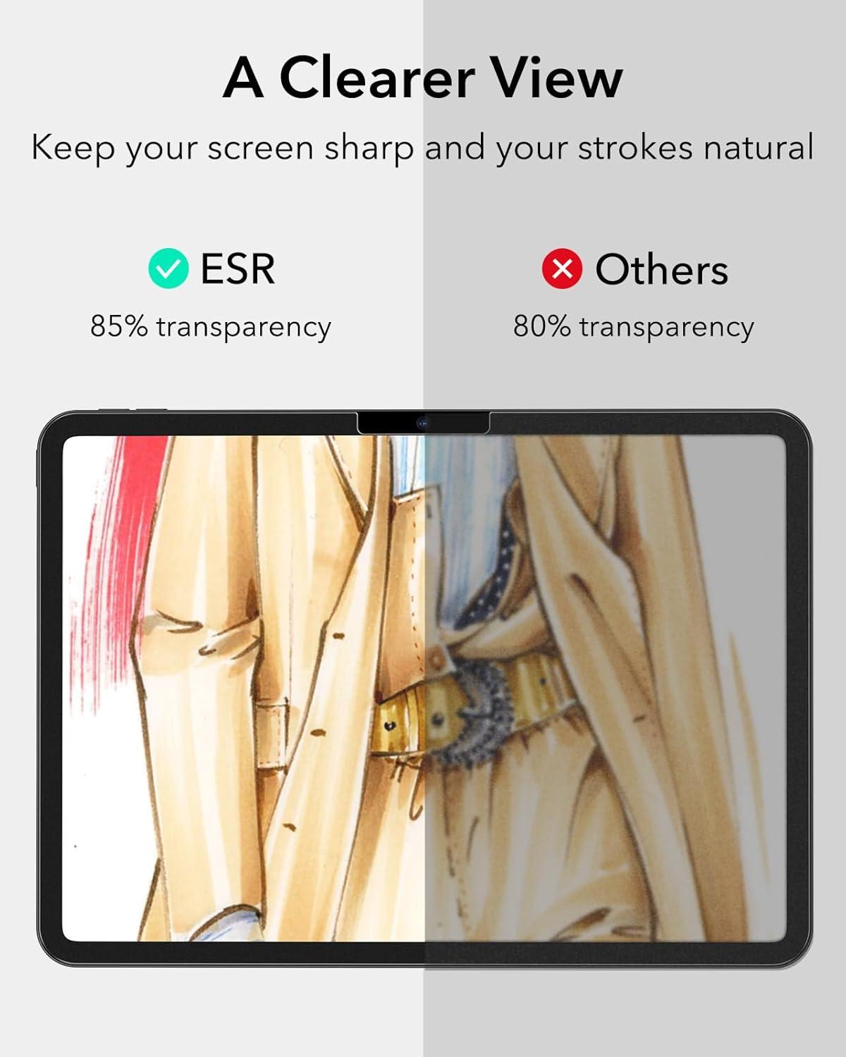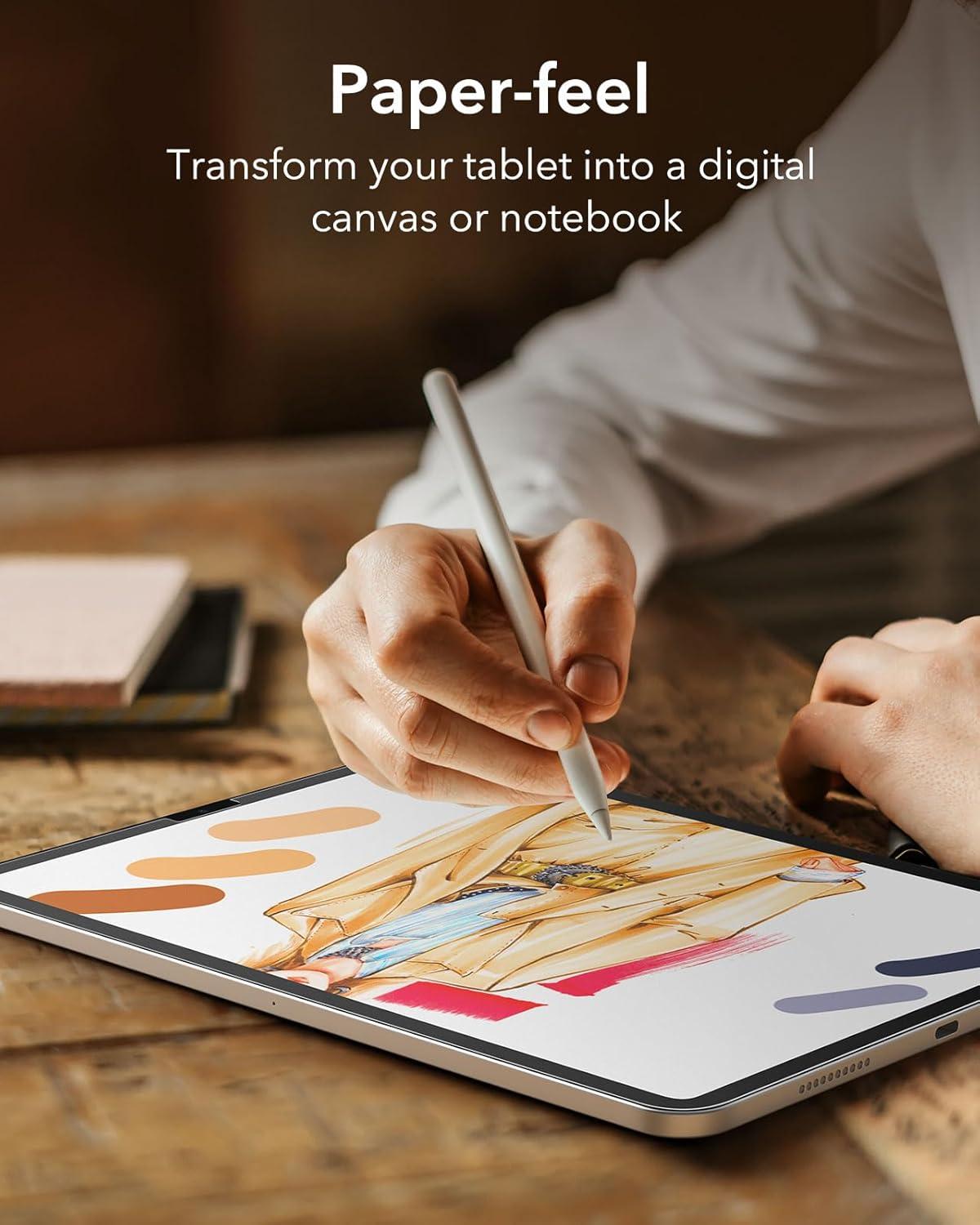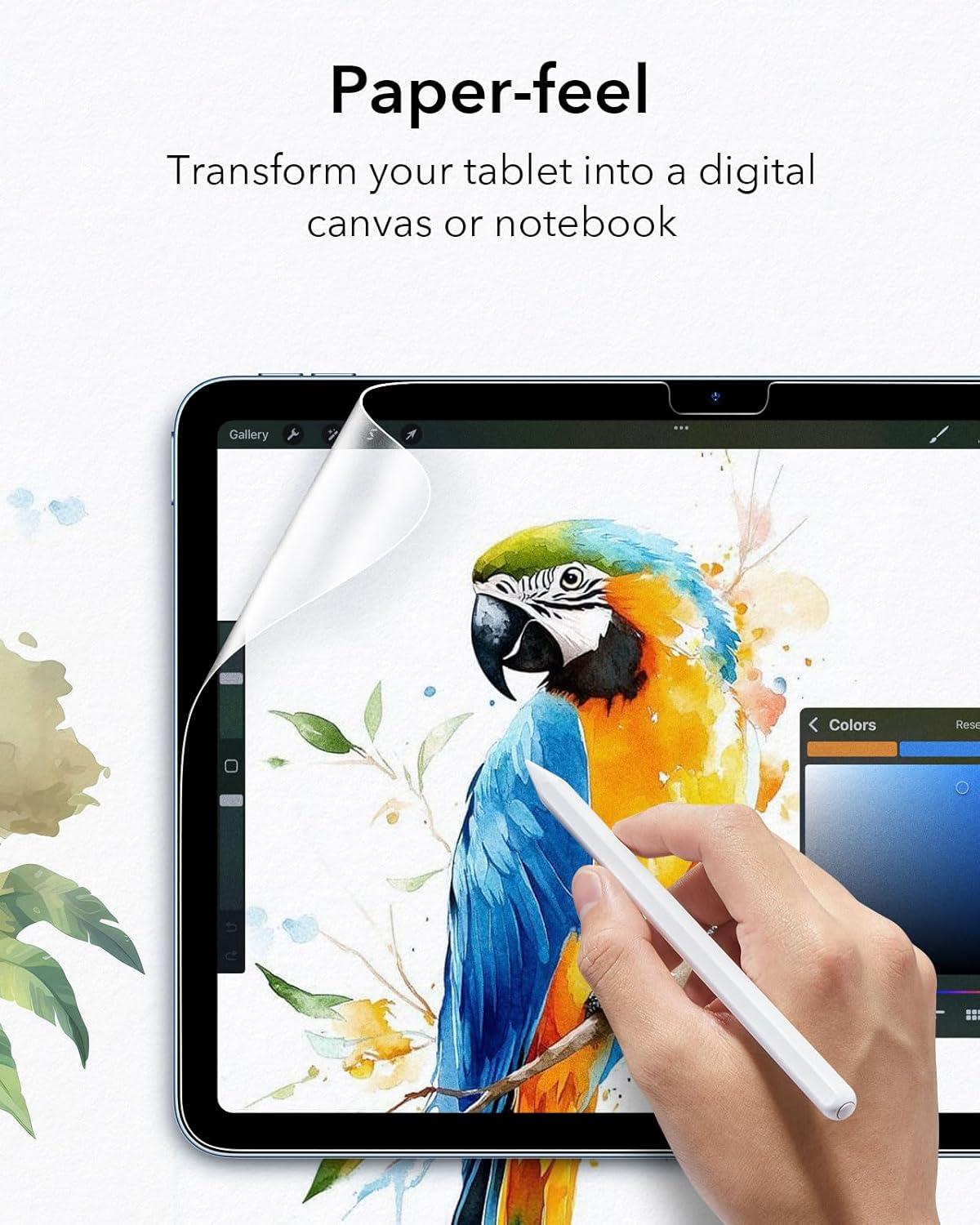 ESR Paper-Feel Screen Protector for iPad Air 5/iPad Air 4 (2022/2020, 10.9 inch), and iPad Pro 11 (2021/2020/2018), Write and Draw Like on Paper, Face ID and Pencil Compatible, Matte Polymer, 2 Pack(2 pack with flawless fit)