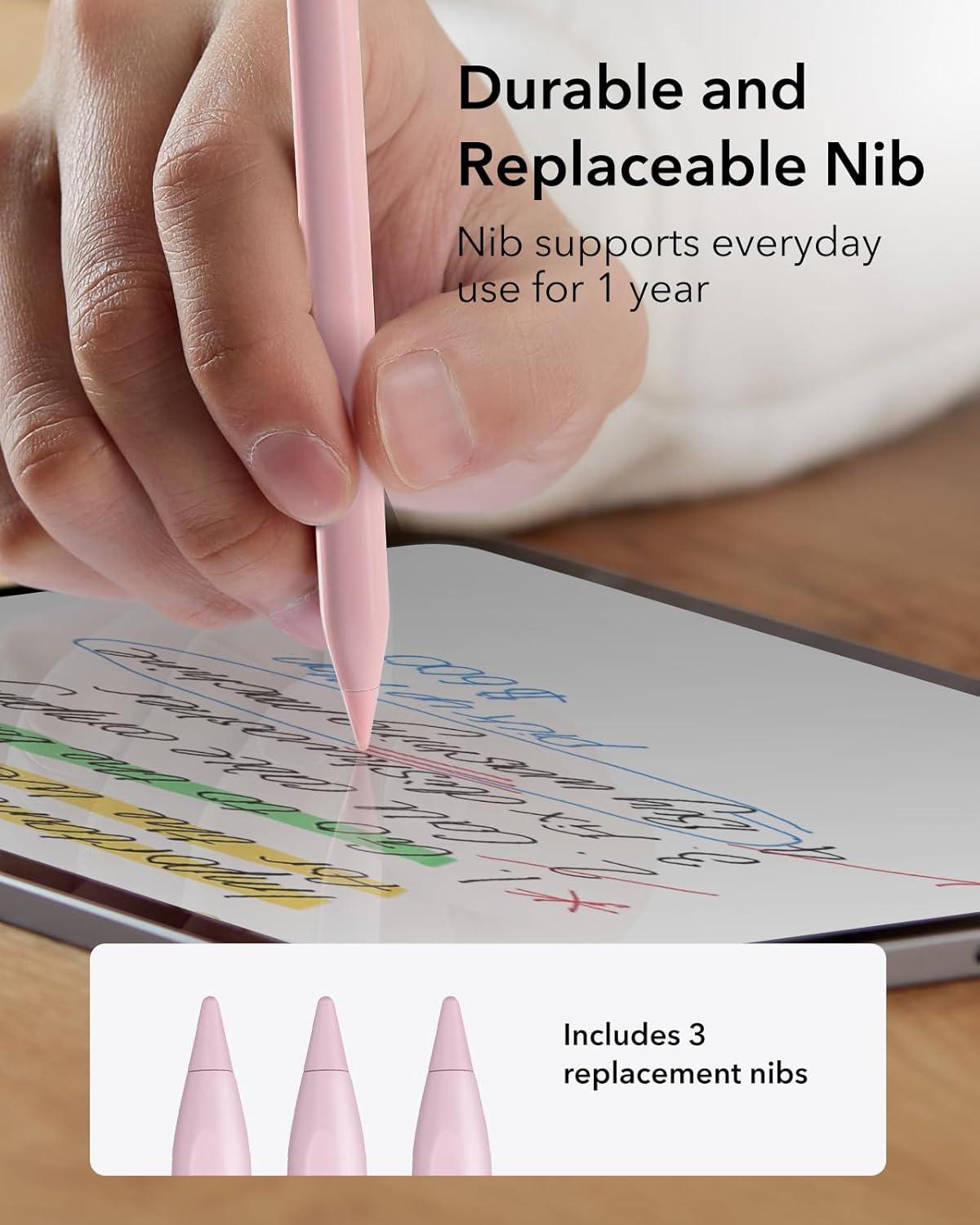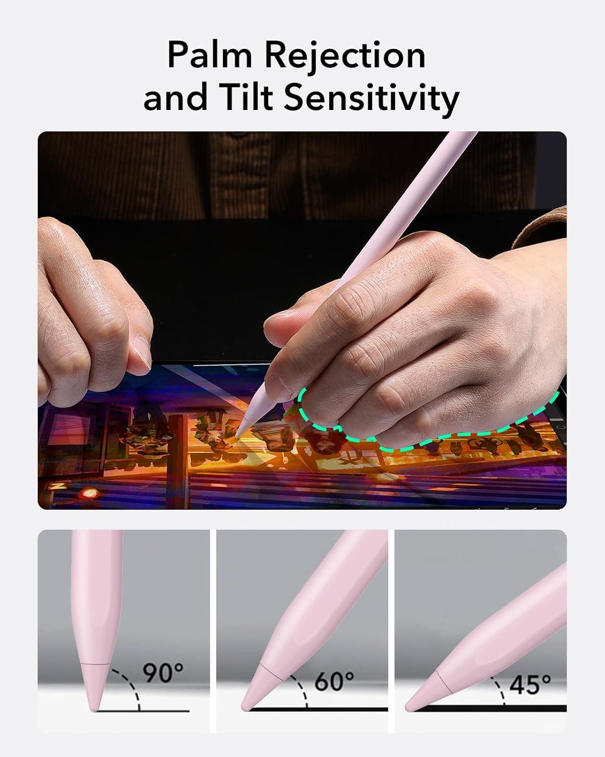 ESR Pencil (1st Generation) for iPad 2018-2025, Tilt Sensitivity, Palm Rejection, Compatible with iPad 11th(A16)/10th Generation,Air 11″/13″, Pro 11″/12.9″/13″,Mini 6/5, Black(Pink)