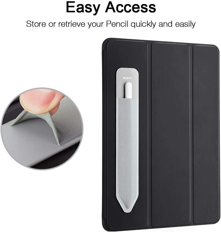 ESR Pencil Case Holder Compatible with The Pencil (Pro and 1st and 2nd Gen), Elastic Pocket for Stylus Pen [Pencil Protected and Safe] Pouch Adhesive Sleeve Attached to Case for Pencil, Black(Silver Grey)