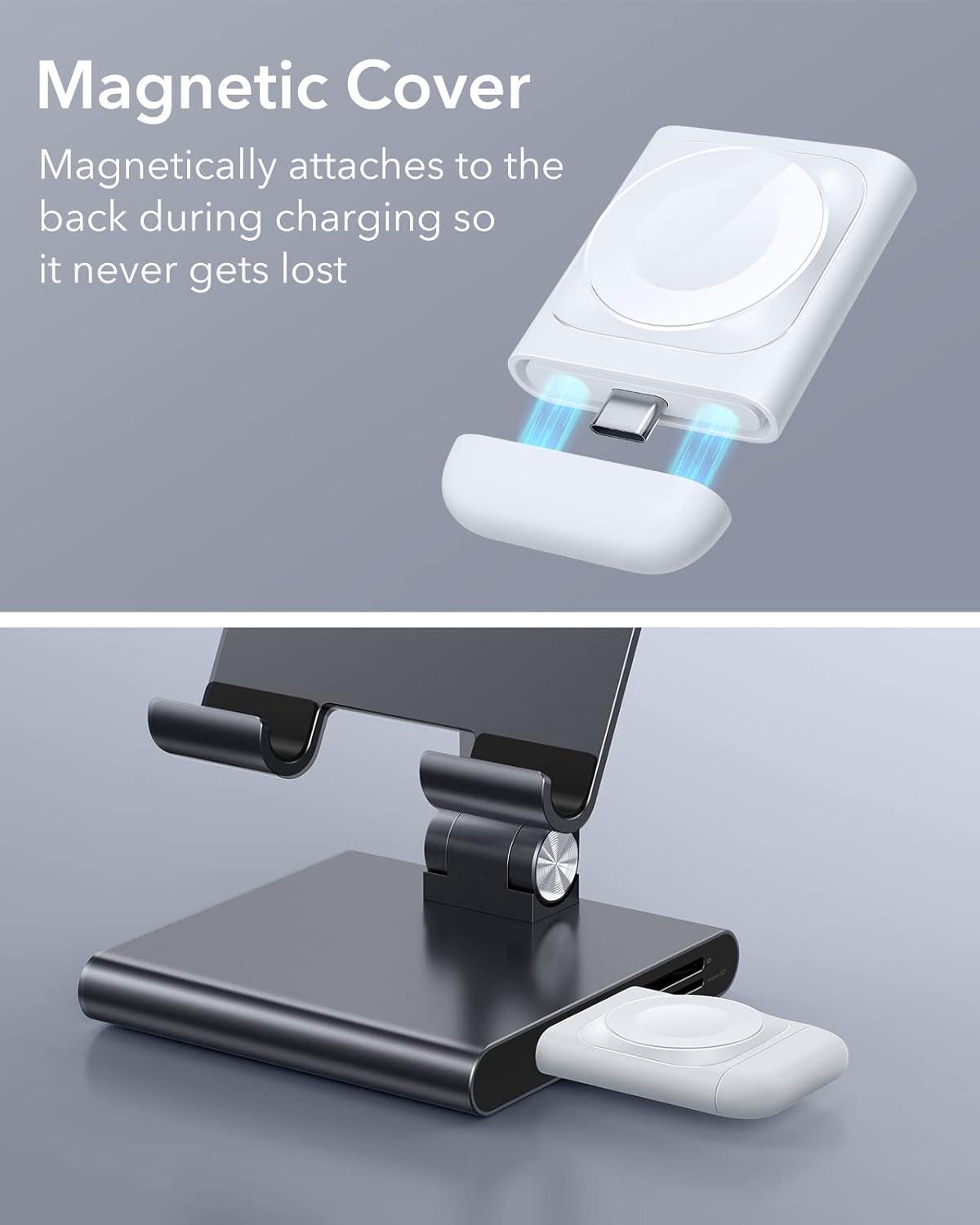 ESR Portable Charger for Apple Watch, Certified Made for Apple, Small and Portable, Magnetic Cover, Fast USB-C Charging for Watch Ultra, Series 8/7/6/5/4/3/2/1, Classic White