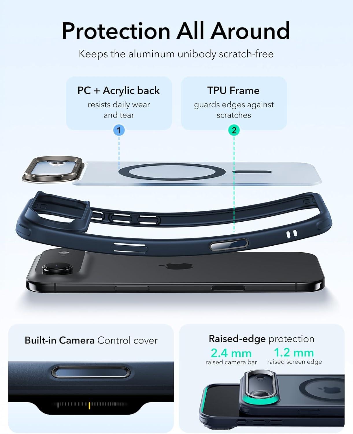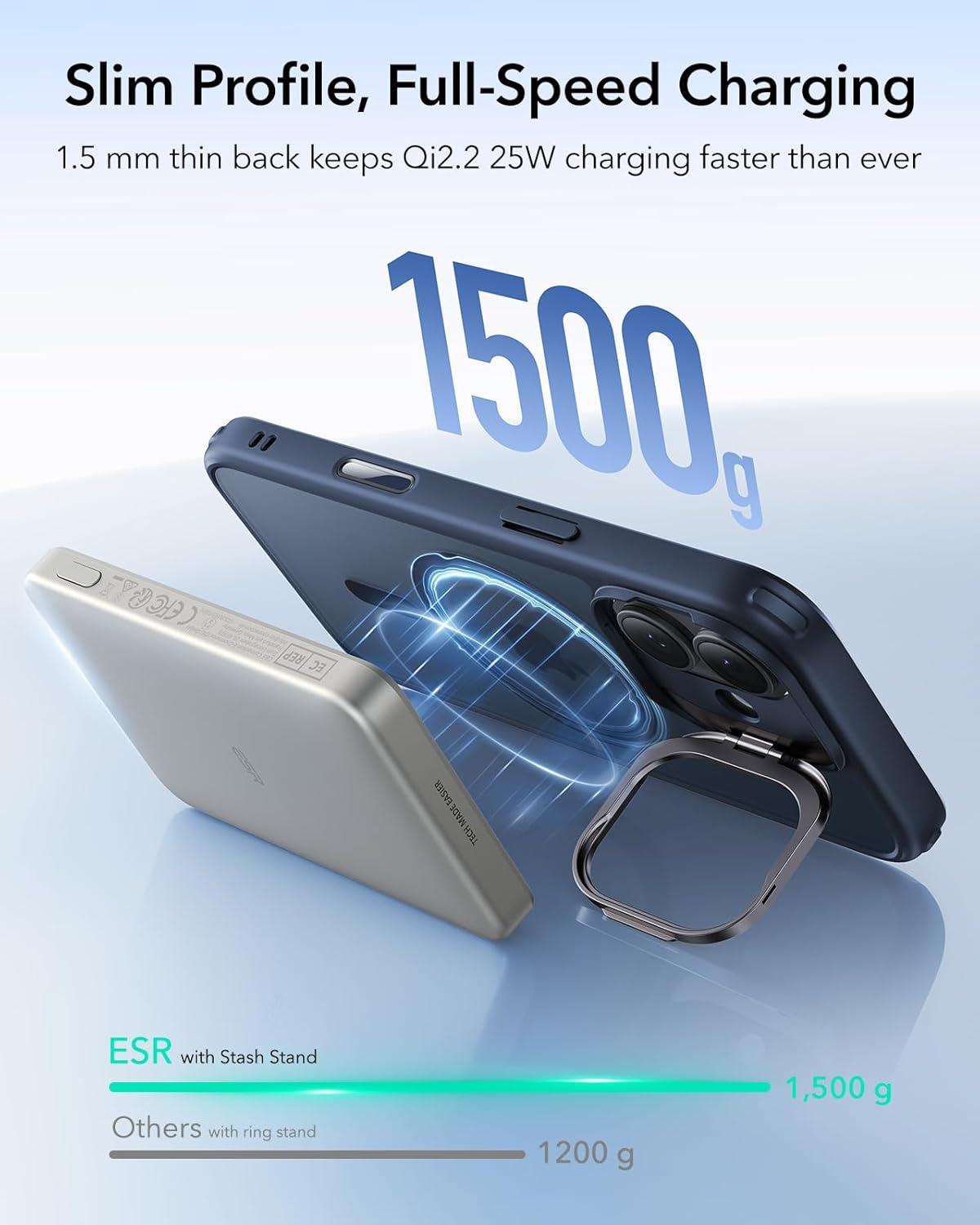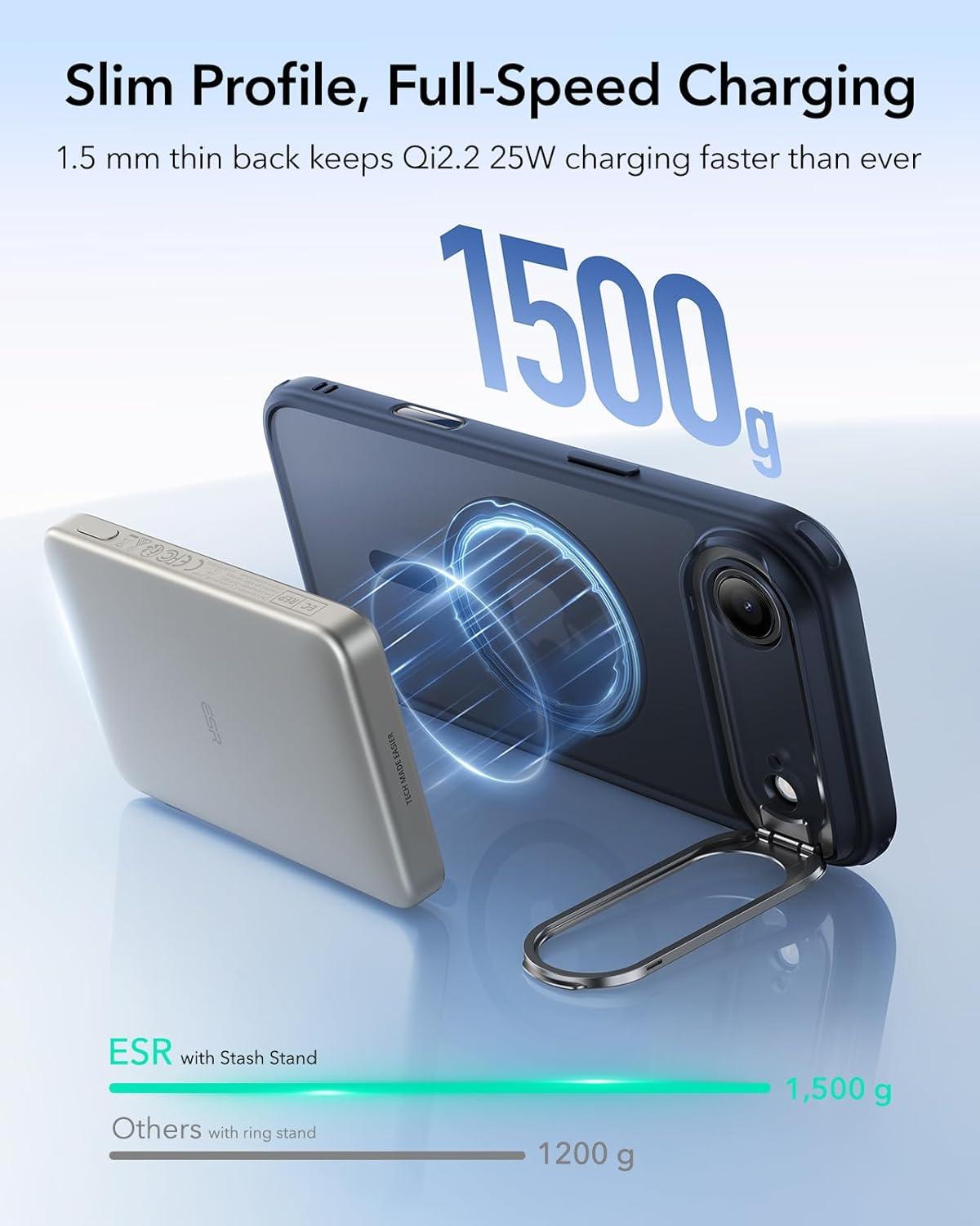 Adjustable Stash Stand: positioned around camera frame to stay hidden when folded away while keeping MagSafe ring 100% unobstructed; enjoy a freely adjustable and stable view for watching shows whenever, wherever