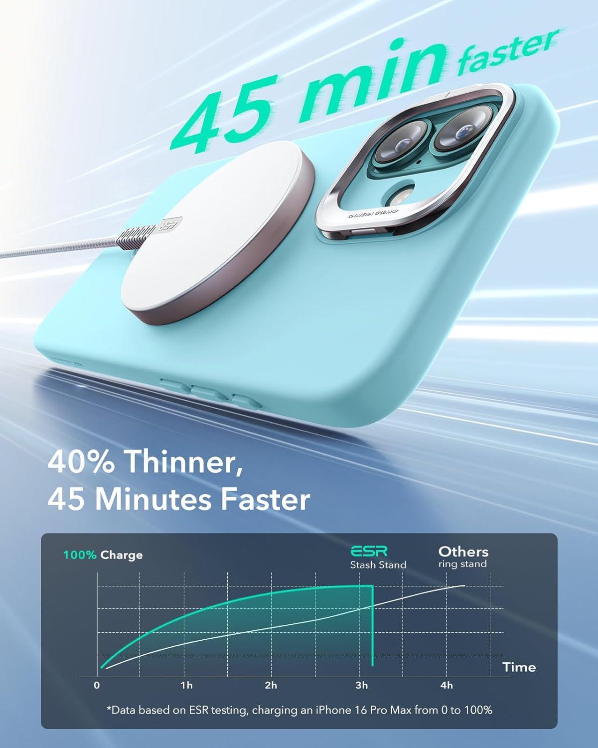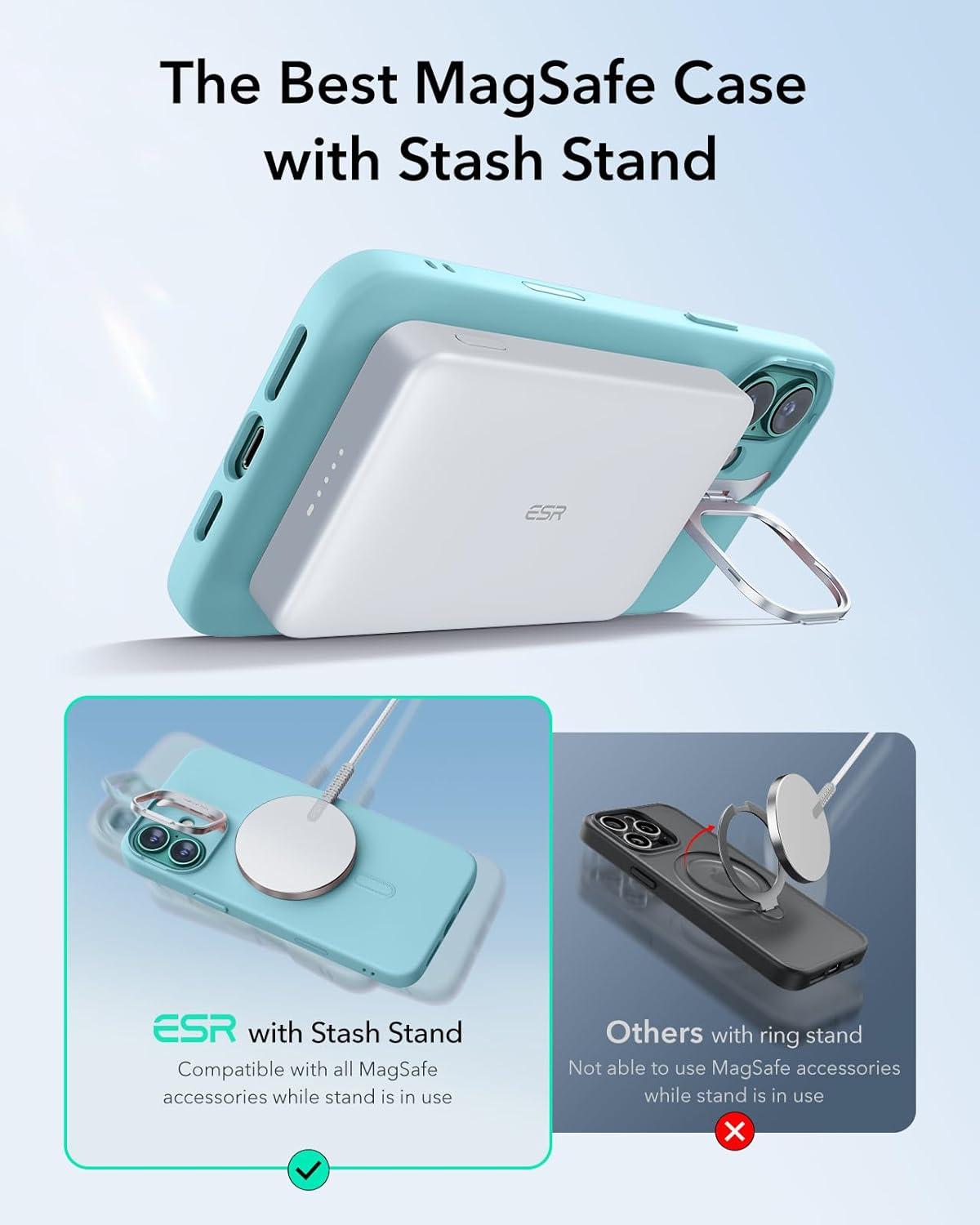 Adjustable Stash Stand: positioned around camera frame to stay hidden when folded away while keeping MagSafe ring 100% unobstructed; enjoy a freely adjustable and stable view for watching shows whenever, wherever