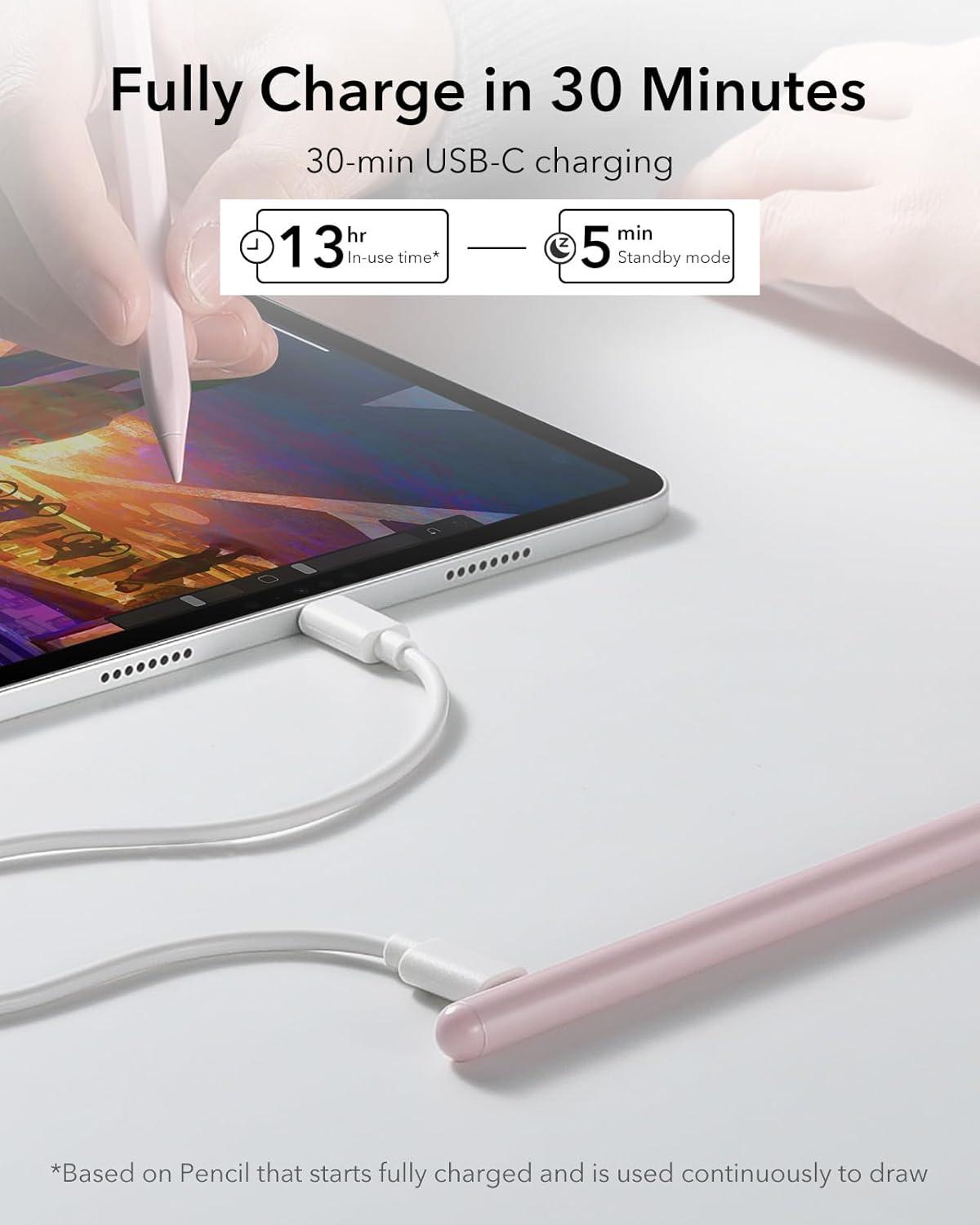 ESR Stylus Pencil for iPad 9th/10th Generation, iPad Pencil with Tilt Sensitivity, Palm Rejection, Stylus Pen Compatible with 2018-2022, Pro 12.9/11 Inch, Air 5th/4th, mini 6/5, Pink(Pink)