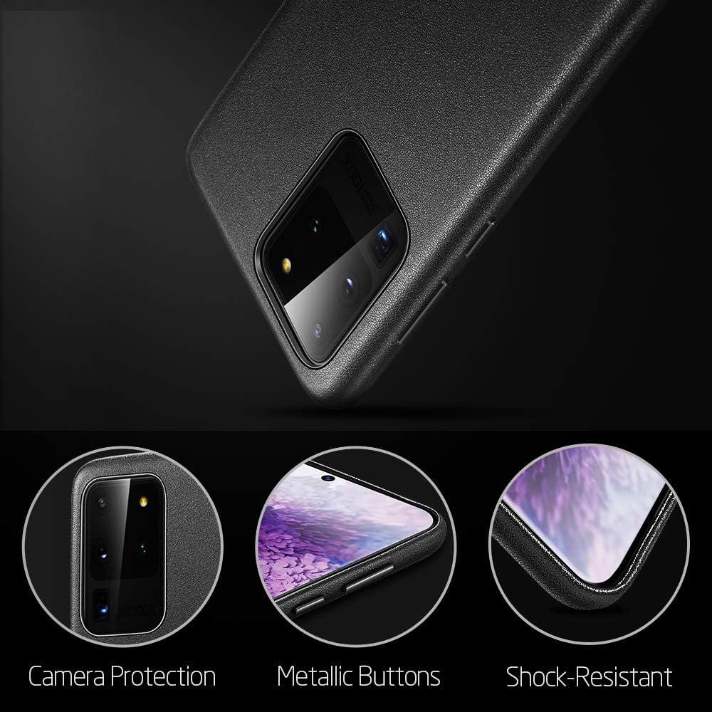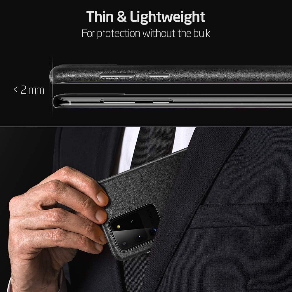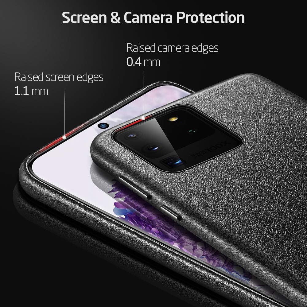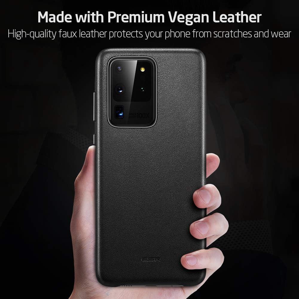 ESR Vegan Leather Case Compatible with Galaxy S20 Ultra – Slim Faux-Leather Phone Case [Supports Wireless Charging] [Scratch-Resistant] Protective Case for The Samsung Galaxy S20 Ultra (2020) – Black